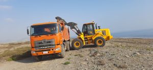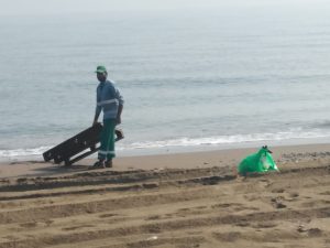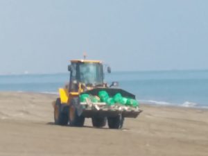 جانب من أعمال دائرة الشؤون البلدية بشناص حول نظافة الشاطئ بمنطقة المرير بولاية شناص .