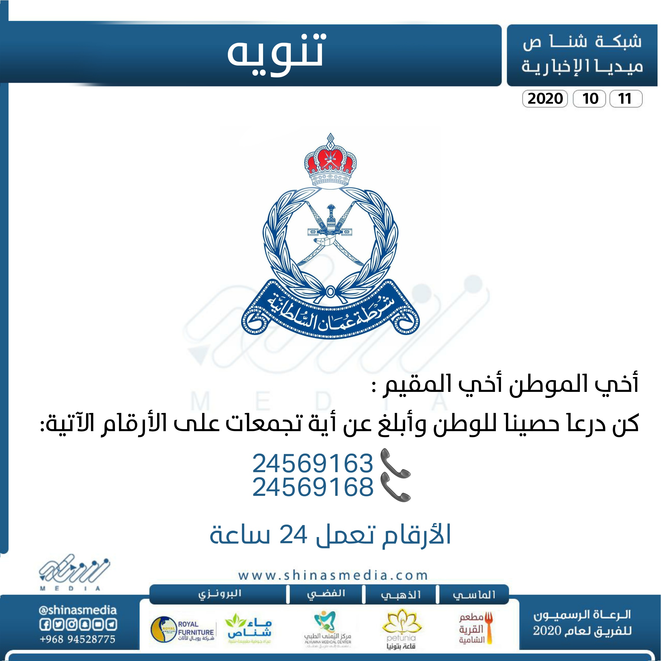 أخي الموطن أخي المقيم :كن درعا حصينا للوطن وأبلغ عن أية تجمعات على الأرقام الآتية:بواسطة المهندس علي الريسي / 11 أكتوبر، 2020