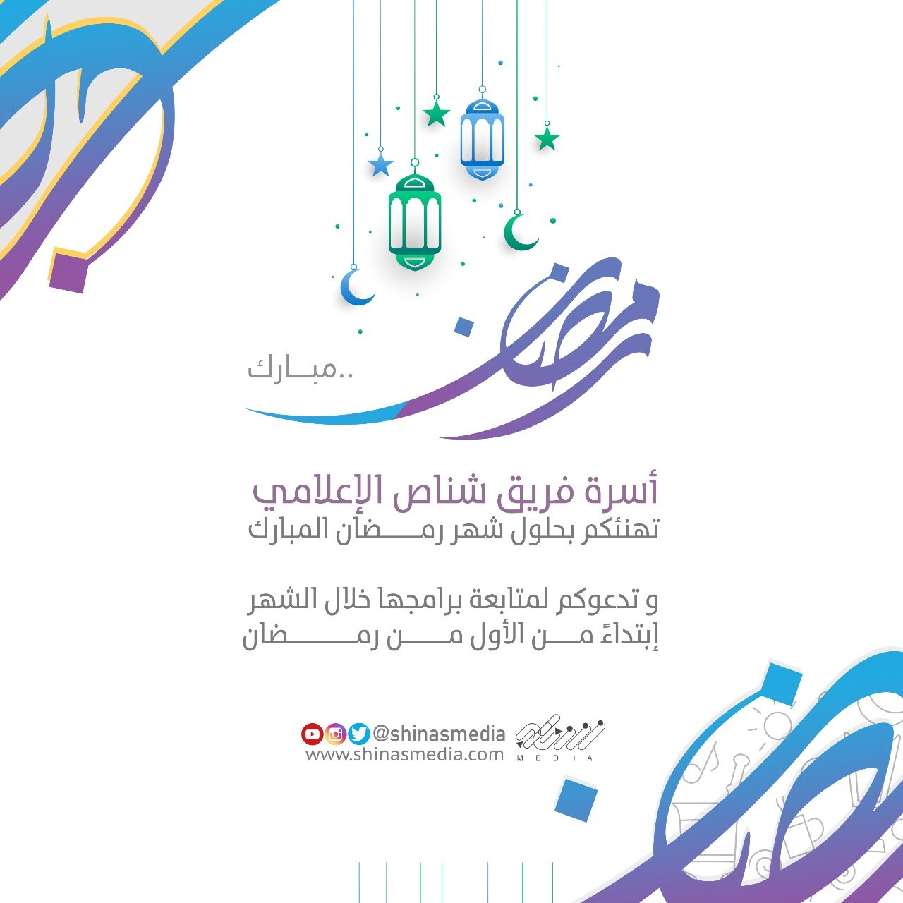 أسرة فريق شناص الإعلامي تهنئكم بحلول شهر رمضان المبارك ، و تدعوكم لمتابعة برامجها خلال الشهر إبتداءً من الأول من رمضان . و كل عام و أنتم بخير 🌙✨ #شناص_ميديا #حياك_يا_رمضانبواسطة المهندس علي الريسي / 6 مايو، 2019