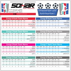 تنطلق مساء اليوم الثلاثاء الجولة الثالثة من بطولة كأس ميناء صحار والمنطقة الحرة لكرة القدم 2025 في نسختها الخامسة عشرة، والتي سوف تعلن عن الفرق المتأهلة إلى دور الستة عشر، وسوف تتضح الأسماء مع نهاية الجولة الثالثة التي تقام يومي الثلاثاء والأربعاء.