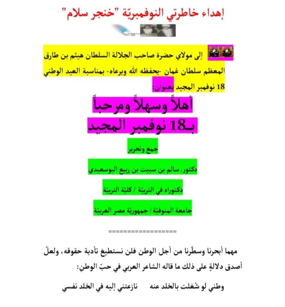 إهداء خاطرتي النوفمبريّة “خنجر سلام”بقلم الدكتور. سالم بن سبيت بن ربيع البوسعيدي
