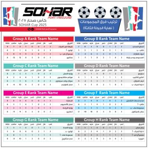 اكتمال الفرق المتأهلة لدور 16 ببطولة كأس ميناء صحار والمنطقة الحرة