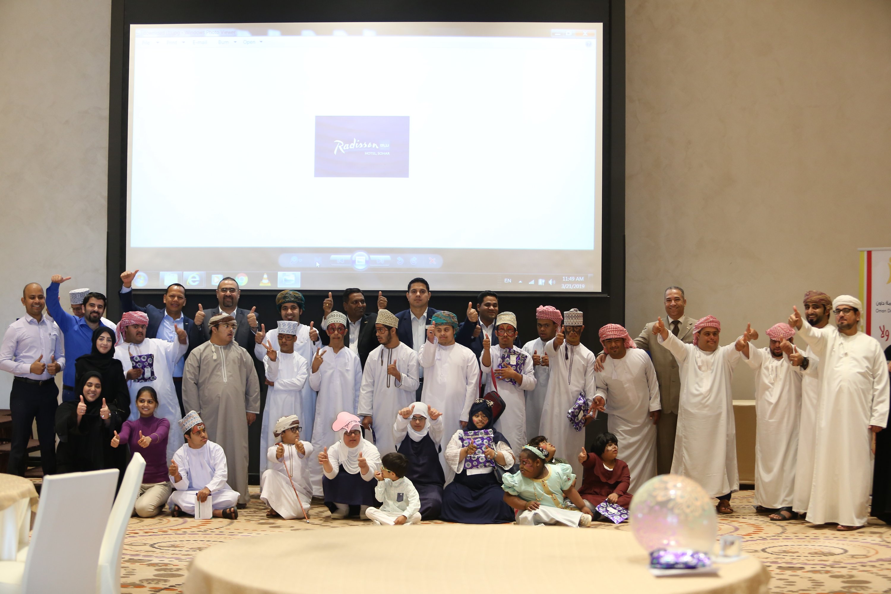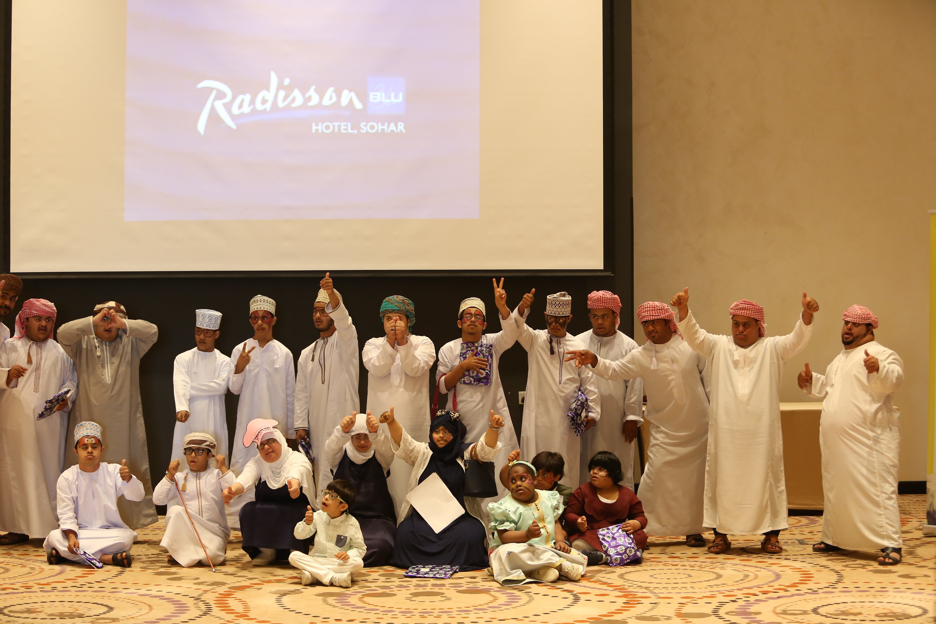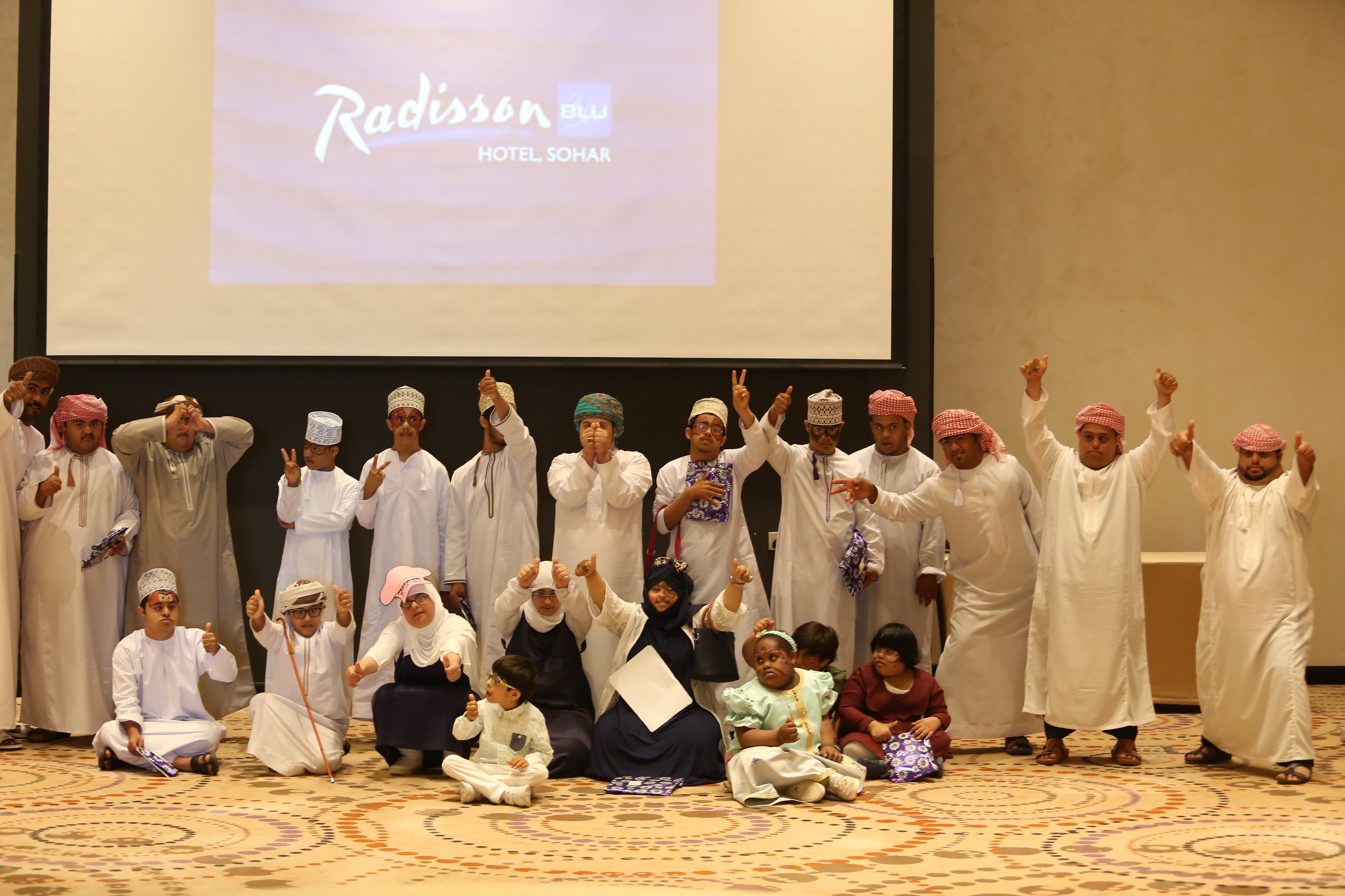 في إطار احتفالات دول العالم والخليج وسلطنة عمان خاصة باليوم العالمي لمتلازمة داون والذي خصص له يوم ٢١ من مارس من كل عام ، شارك سفراء العطاء بتنظيم فعالية الإحتفال باليوم العالمي لمتلازمة داون بالتعاون مع الجمعية العمانية لمتلازمة داون فرع محافظة شمال الباطنة وذلك يوم الخميس الموافق الحادي والعشرون من شهر مارس في فندق راديسون بلو ،، حيث تضمنت الفعالية برنامج حفل ابتداء بالقرآن الكريم وكلمة الترحيب من الجمعية العمانية لمتلازمة داون ،، تلا ذلك فقرة فن اليولة قدمها طلاب من مركز الوفاء لتأهيل المعاقين بصحار ،، وعدد من المحاضرات التوعوية وورش العمل التي تتناسب مع هذا اليوم ،، على الصعيد الآخر أقيمت عدد من الفقرات الترفيهية والمسابقات والألعاب عّلى المسرح لأطفال متلازمة داون وأطفال مدارس الدمج قدمها اعضاء سفراء العطاء وعدد من المتطوعين في الفعالية ،، كما شارك فريق سفراء العطاء بعدد من الأركان في الفعالية منها ركن الحناء ، ركن الرسم على الوجوه ، ركن الرسم والتلوين ، ركن الطباخ الصغير وركن التصوير الضوئي والتصوير وأنتهت الفعالية بأخذ الصور التذكارية للحضور والأطفال والمتطوعين .