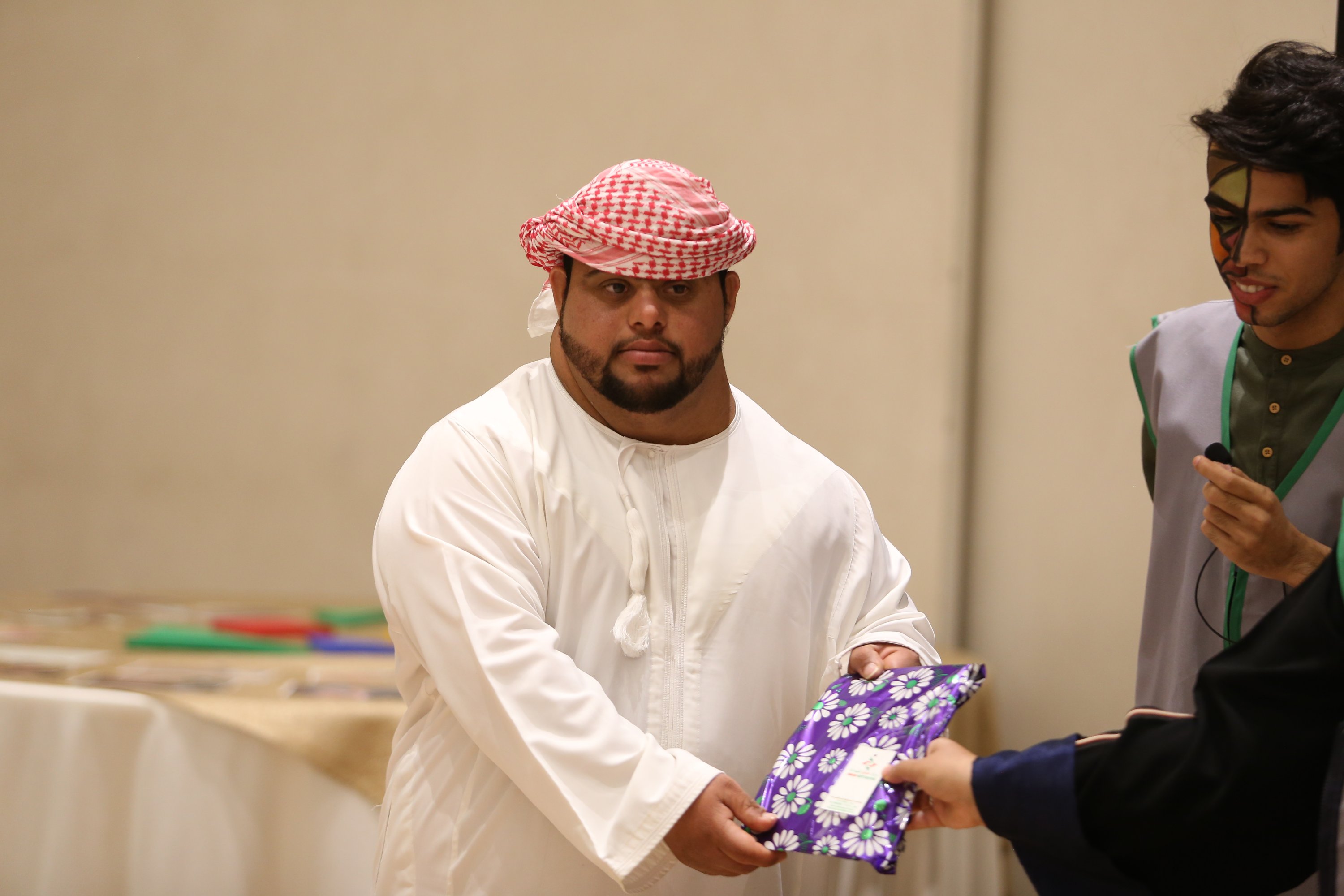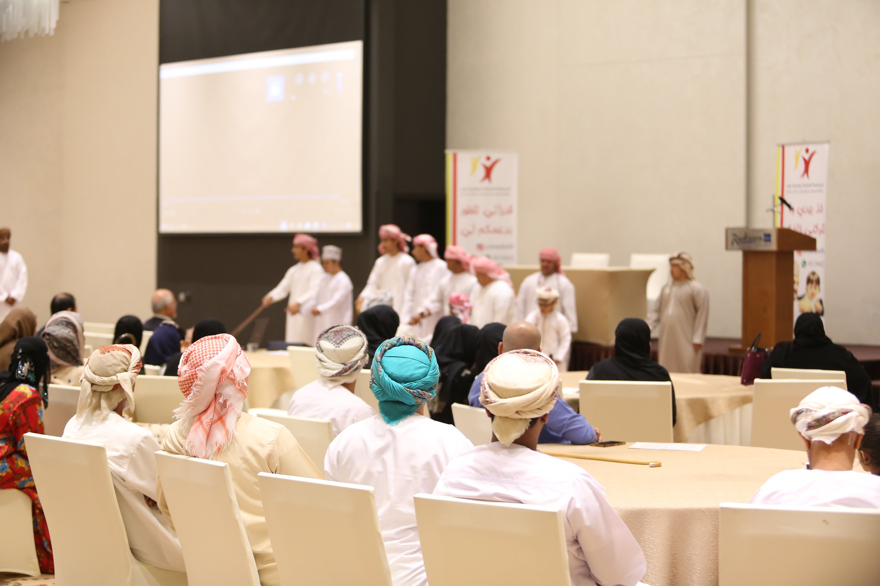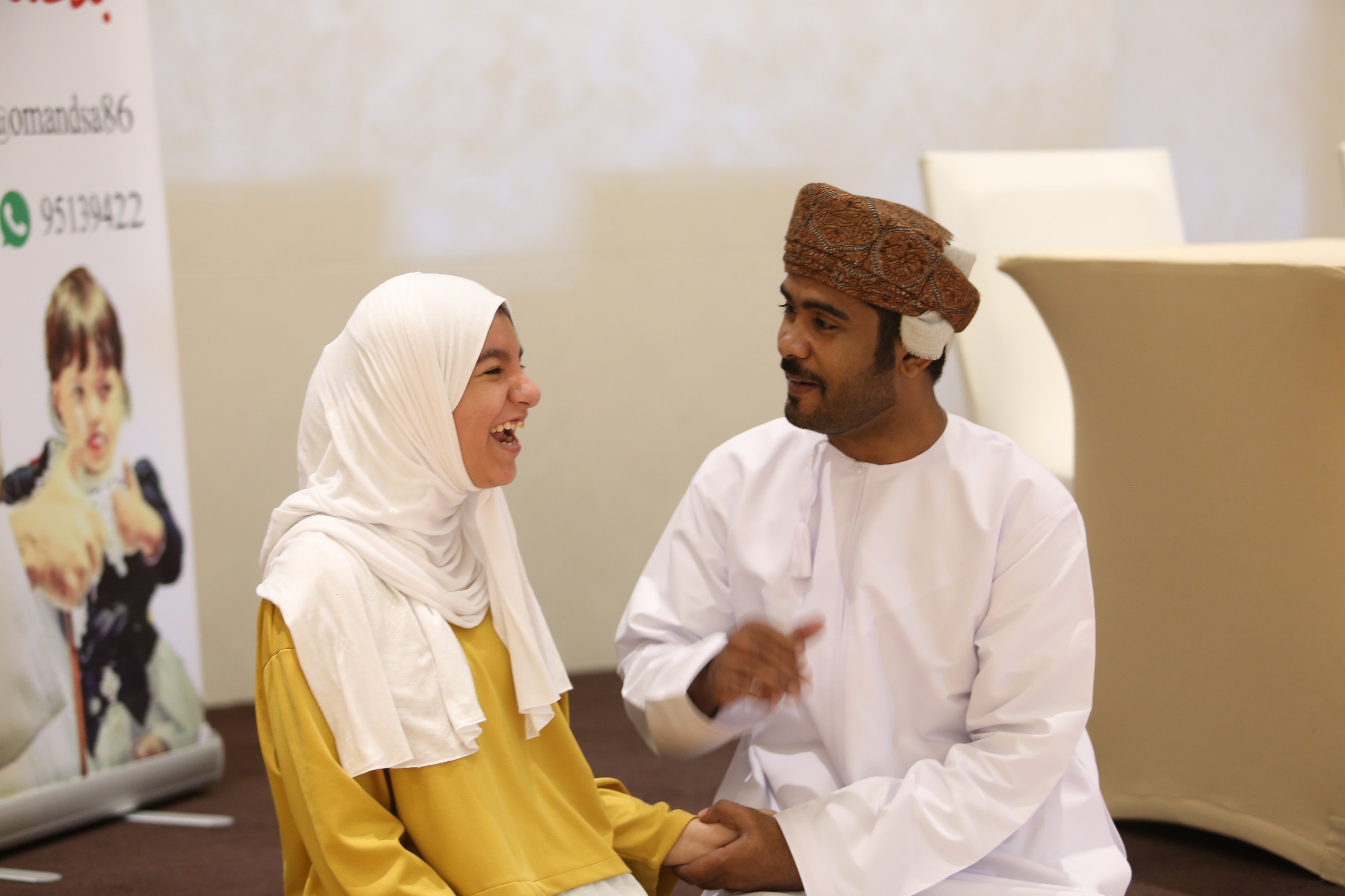 في إطار احتفالات دول العالم والخليج وسلطنة عمان خاصة باليوم العالمي لمتلازمة داون والذي خصص له يوم ٢١ من مارس من كل عام ، شارك سفراء العطاء بتنظيم فعالية الإحتفال باليوم العالمي لمتلازمة داون بالتعاون مع الجمعية العمانية لمتلازمة داون فرع محافظة شمال الباطنة وذلك يوم الخميس الموافق الحادي والعشرون من شهر مارس في فندق راديسون بلو ،، حيث تضمنت الفعالية برنامج حفل ابتداء بالقرآن الكريم وكلمة الترحيب من الجمعية العمانية لمتلازمة داون ،، تلا ذلك فقرة فن اليولة قدمها طلاب من مركز الوفاء لتأهيل المعاقين بصحار ،، وعدد من المحاضرات التوعوية وورش العمل التي تتناسب مع هذا اليوم ،، على الصعيد الآخر أقيمت عدد من الفقرات الترفيهية والمسابقات والألعاب عّلى المسرح لأطفال متلازمة داون وأطفال مدارس الدمج قدمها اعضاء سفراء العطاء وعدد من المتطوعين في الفعالية ،، كما شارك فريق سفراء العطاء بعدد من الأركان في الفعالية منها ركن الحناء ، ركن الرسم على الوجوه ، ركن الرسم والتلوين ، ركن الطباخ الصغير وركن التصوير الضوئي والتصوير وأنتهت الفعالية بأخذ الصور التذكارية للحضور والأطفال والمتطوعين .