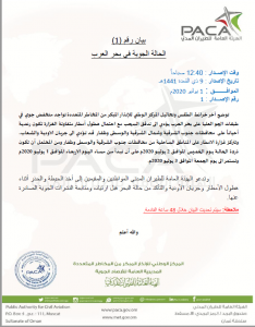 أوضحت المديرية العامة للأرصاد الجوية أن ‏الصورة الجوية توضح السحب المصاحبة للمنخفض الجوي في بحر العرب مع تدفق السحب على سواحل جنوب الشرقية والوسطى وعلى محافظة ظفار ومن المتوقع ازدياد فرص تدفق السحب الممطرة-متفاوتة الغزارة- على محافظات جنوب الشرقية والوسطى وظفار وشمال الشرقية خلال الساعات القادمة.