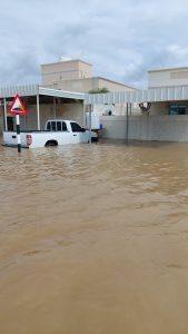 ويضيف المياسي: أدت المياه التي غمرت منازل التعويضات إلى تدخل هيئة الدفاع المدني والإسعاف وشرطة عمان السلطانية ووزارة التنمية الاجتماعية لإخلاء الأهالي، وتخصيص مدرسة سعيد بن المسيب للتعليم الأساسي كمركز إواء، وقطع التيار الكهربائي، فكان هذا الحل المؤقت السريع للحفاظ على سلامتهم في الوقت المتأخر من الليل، حيث أتلفت المياه الأثاث والمفروشات ووصلت مياه المجاري إلى الغرف بروائحها الكريهة المؤثرة على الصحة والحالة النفسية للمواطنين، واحتوى مركز الإواء على 34 أسرة بعدد 275 فرد، وتم توفير لهم الوجبات الغذائية وفراش للنوم.