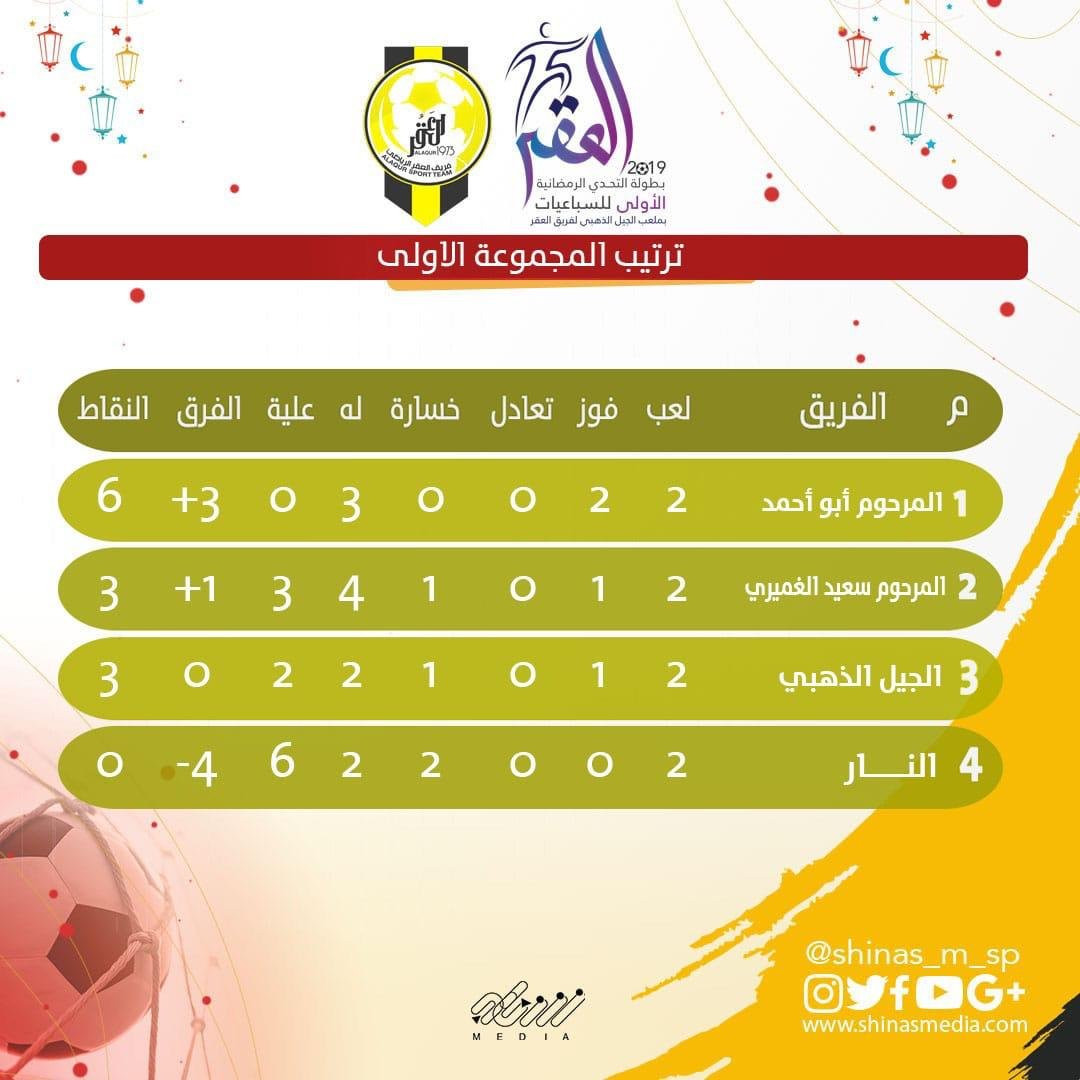 ترتيب المجموعة الاولى من بطولة التحدي الرمضانية بهد نهاية الجولة الثانية