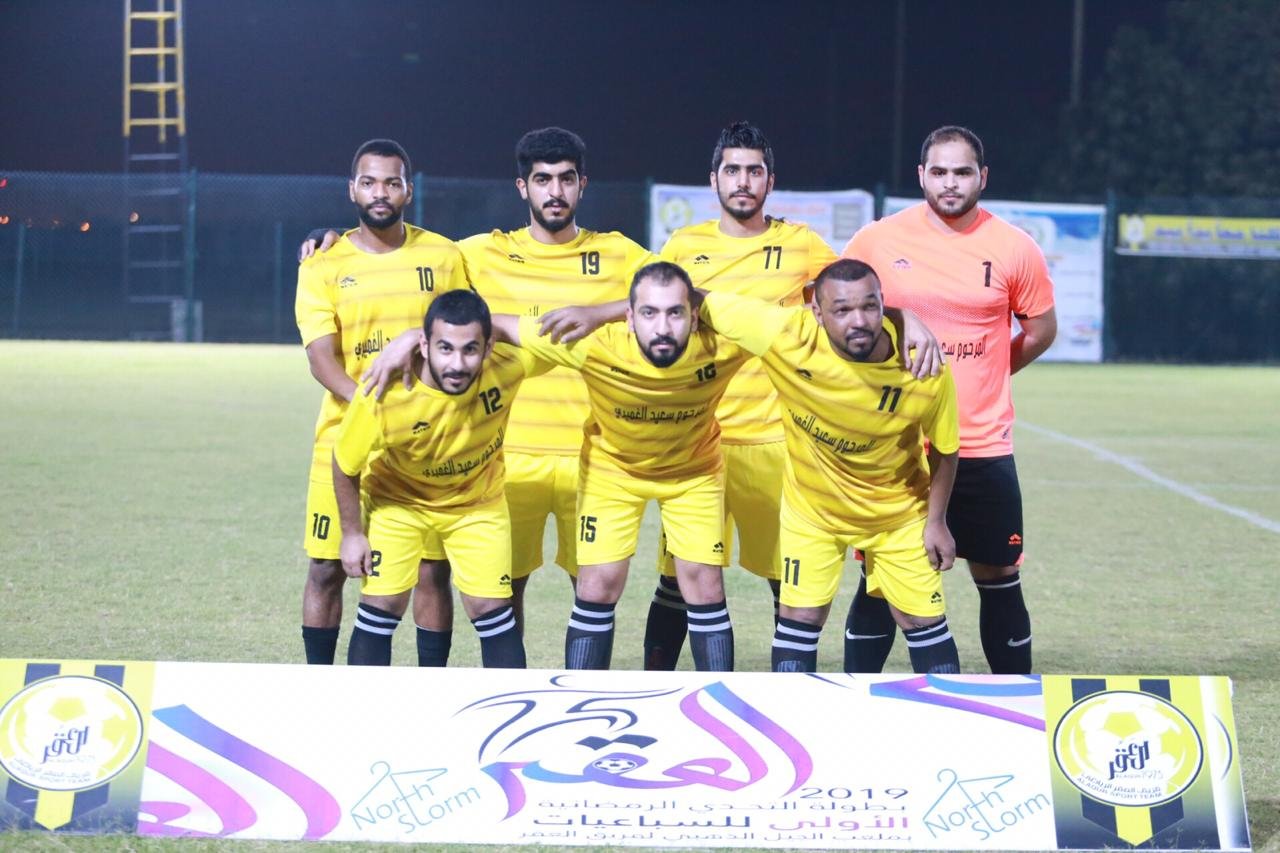 بستة أهداف مقابل خمسة فريق المرحوم سعيد الغميري يتغلب على فريق الجيل الذهبي ضمن منافسات بطولة التحدي الرمضانية الاولى للسباعيات بملعب الجيل الذهبي لفريق العقر.