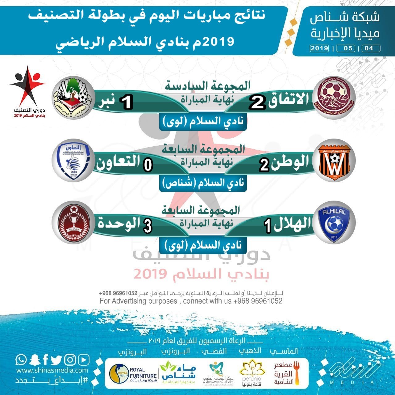 #بطولة_التصنيف_بنادي_السلام_الرياضي #شناص #لوىبواسطة Ali alkhawar / 4 مايو، 2019 نتائج مباريات اليوم في بطولة التصنيف 2019م بنادي السلام الرياضي