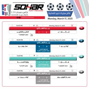 تحديد أطراف المربع الذهبي لبطولة كأس ميناء صحار والمنطقة الحرة