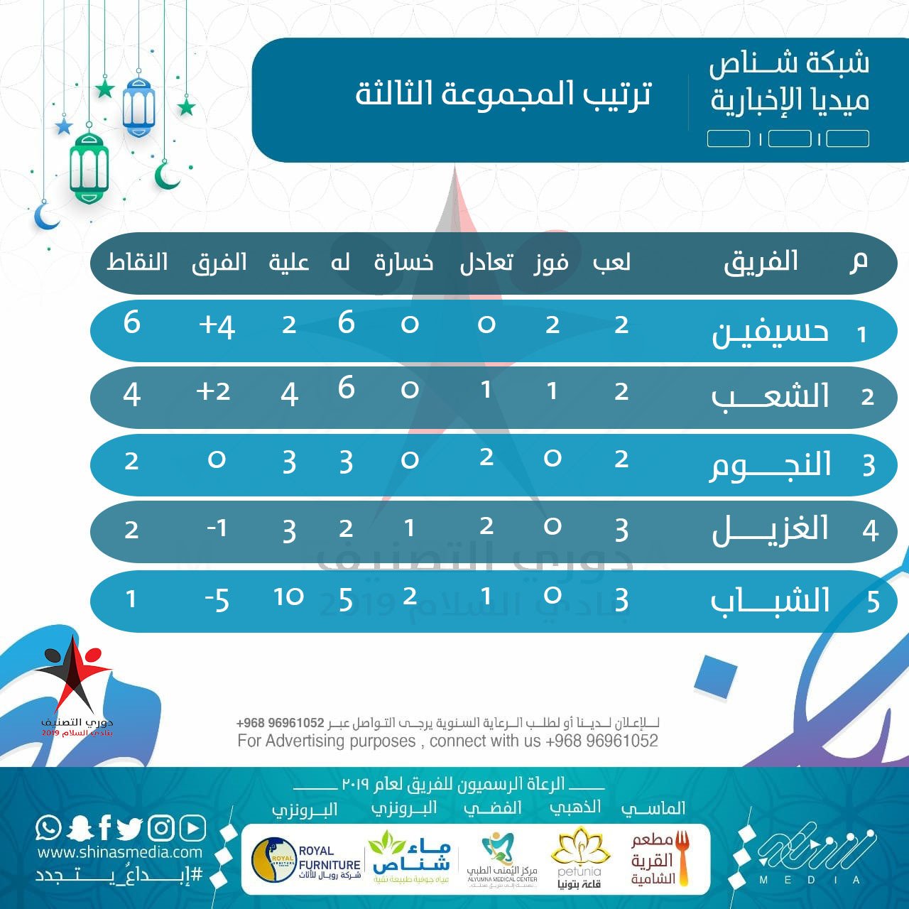 ترتيب المجموعة الثالثة في بطولة التصنيف 2019م بنادي السلام الرياضي