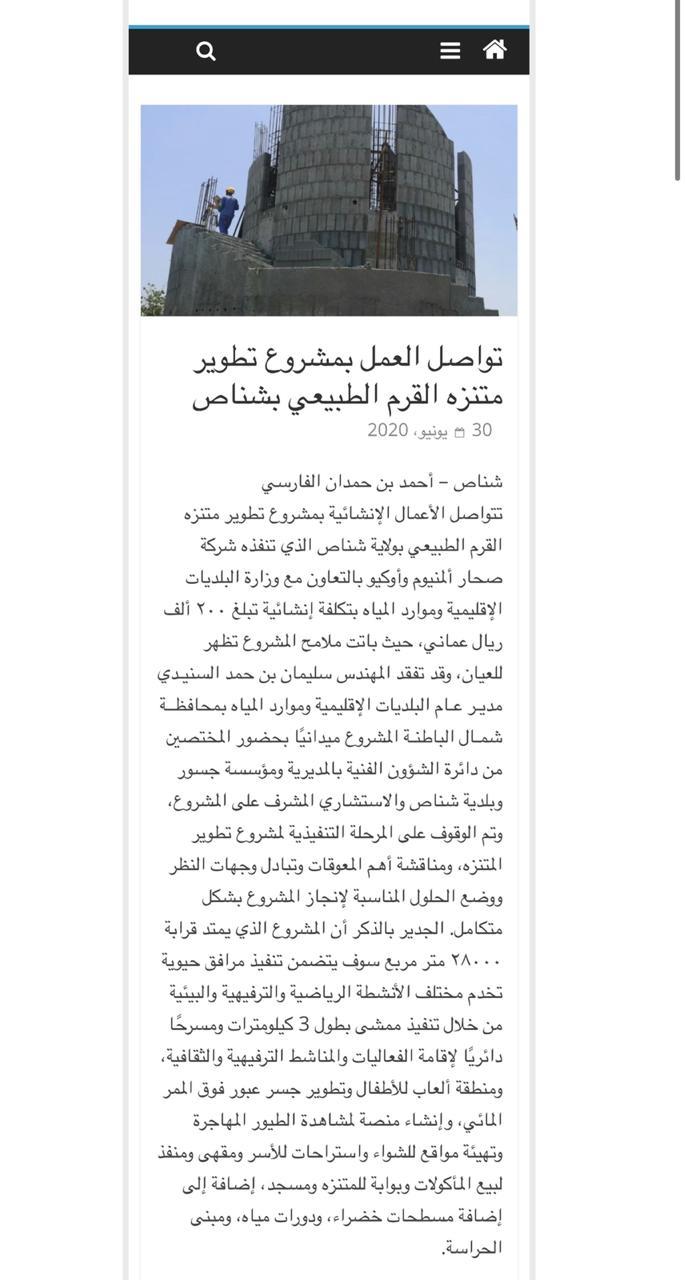 تواصل العمل بمشروع تطوير متنزه القرم الطبيعي بشناص #جريدة_عمان كتب/أحمد بن حمدان الفارسي omandaily.om/?p=799883
