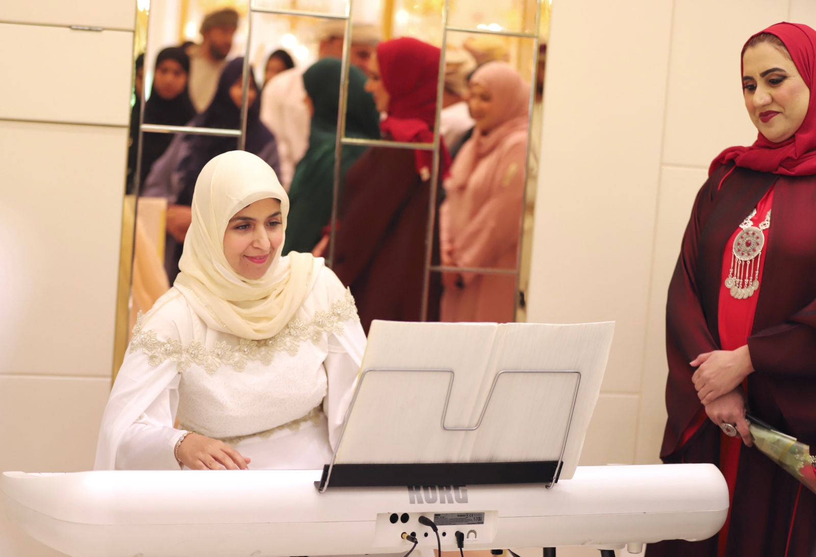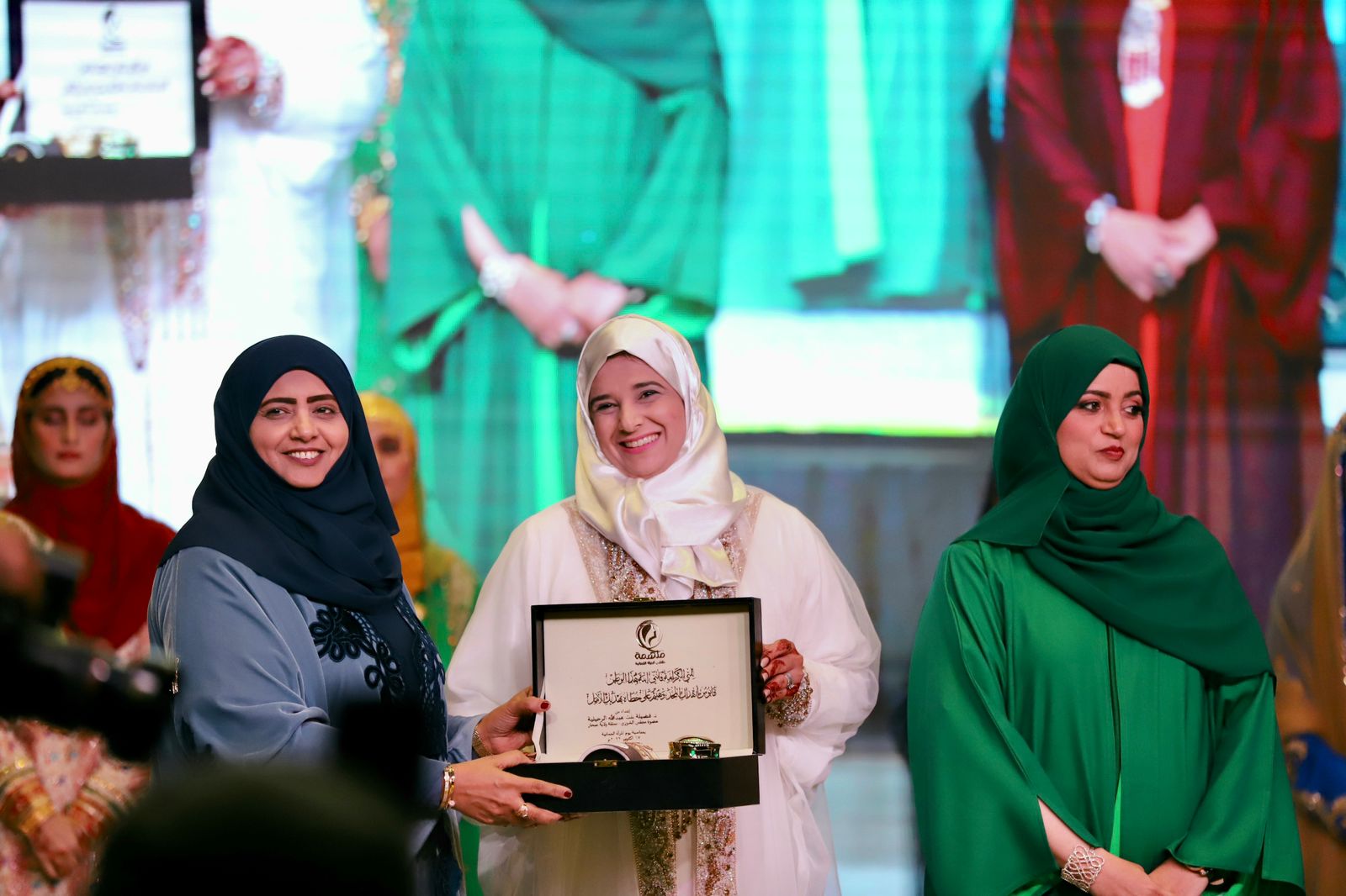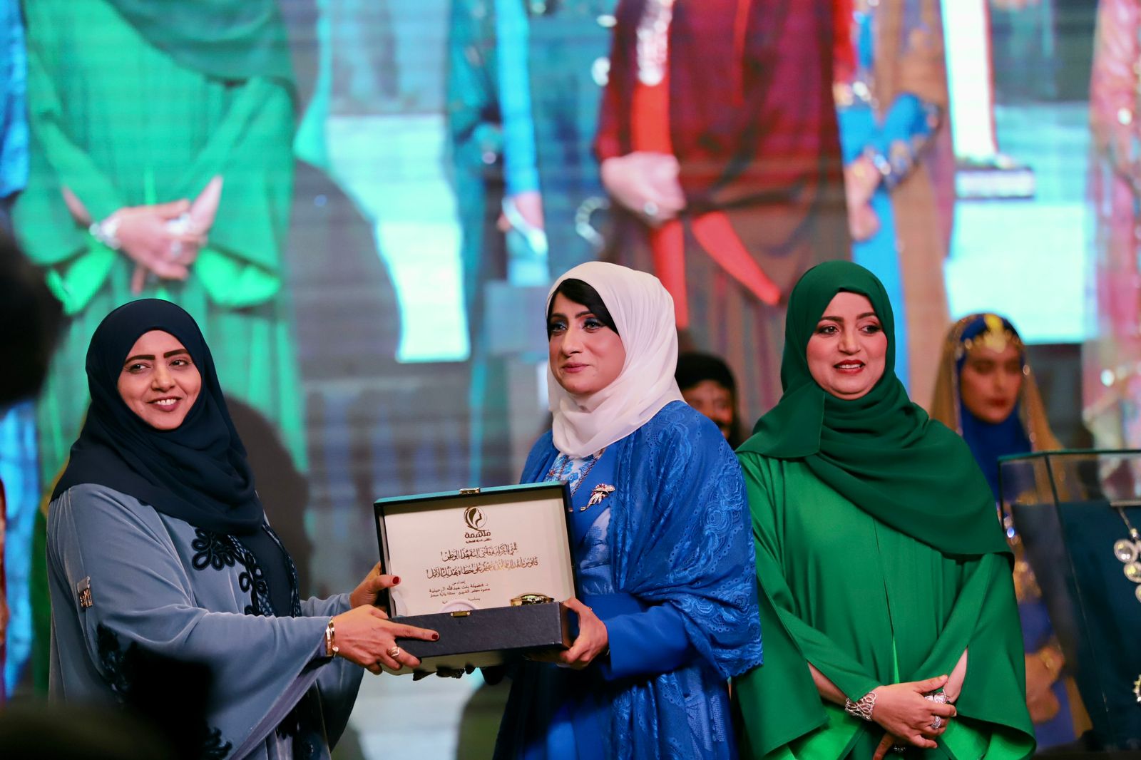 بعدها استمتع الحضور بمشاهدة اوبريت ملهمة الذي تغنى بالمرأة العمانية من خلال التعريف بها في رحلة جميلة عبر الزمان بولايات المحافظة الستة من السويق مرورا بالخابورة وصحم وانتهاءا بصحار ولوى وشناص في تناغم جميل بين التراث والموروث الشعبي والايقاع الفني.