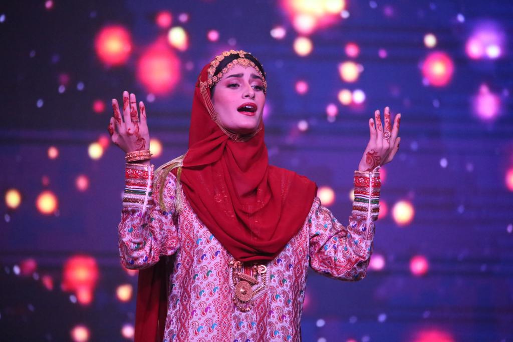 تلا ذلك تقديم اغنية ملهمة اهداء الى السيدة الجليلة عهد البوسعيدية حرم صاحب الجلالة السلطان هيثم بن طارق ال سعيد تغنت من خلالها نساء عمان بالسيدة الجليلة وما تقدمه من اعمال لخدمة الوطن وتقديرها للمرأة العمانية وتكريمها لها في مناسبات مختلفة واشادتها بإسهاماتها في مختلف المجالات.