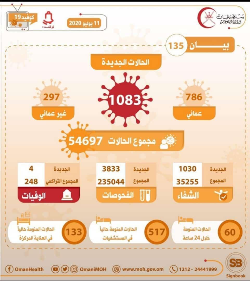 حالات الإصابات الجديدة بفيروس كورونا المستجد بولاية شناص