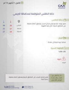 وأكدت الأرصاد على متابعة المختصين بالمركز الوطني للإنذار المبكر من المخاطر المتعددة للحالة الجوية وتطوراتها ، داعية الجميع إلى ضرورة متابعة النشرات والتقارير الصادرة.