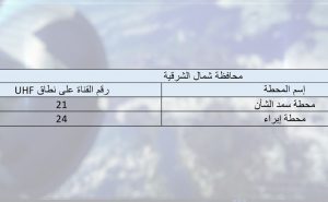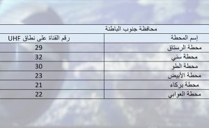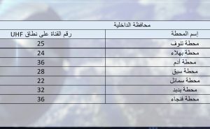 وبالإمكان استقطاب قنوات البث الأرضي الرقمي بمختلف المحافظات كالآتي: