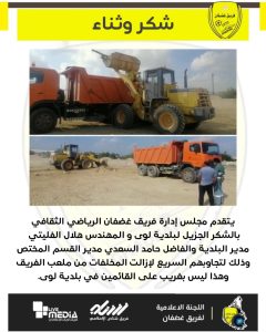 فريق غضفان الرياضي يشكر بلدية لوى على التعاون مع الفريق