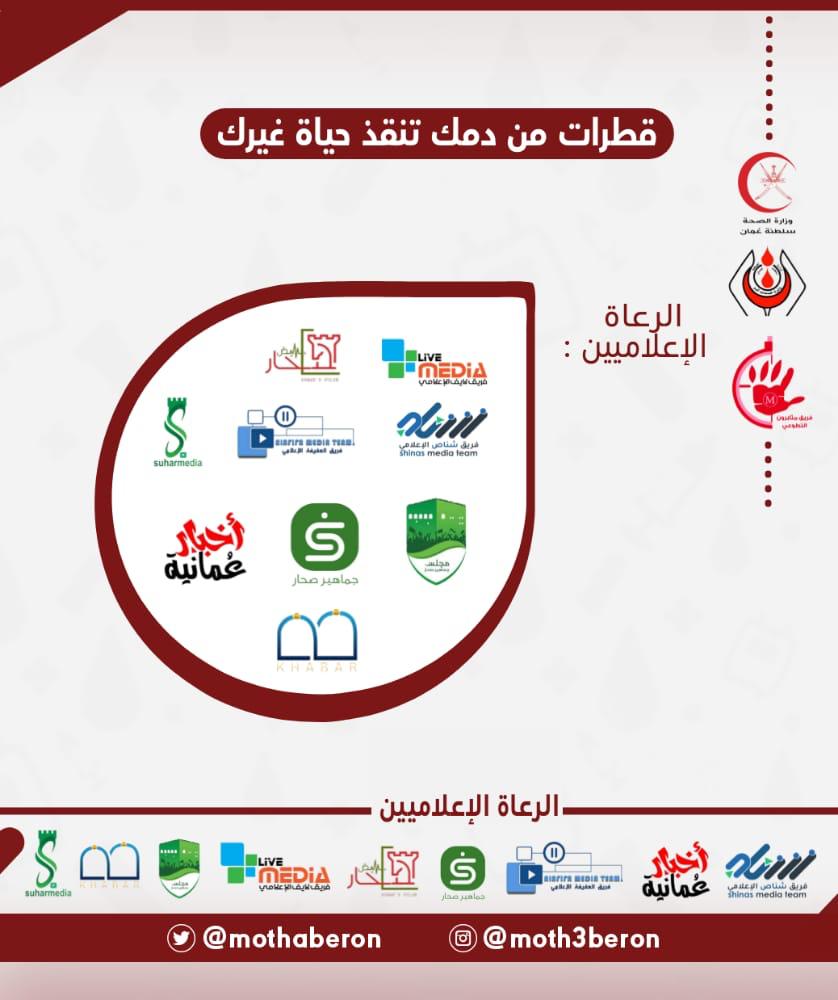 قطرات من دمك تنقذ حياة غيرك 🩸بواسطة Aisha Al-Zaabi / 1 يوليو، 2020 الرعاة الإعلاميين لحملة فريق مثابرون التطوعي للتبرع بالدم بتعاون مع بنك الدم بمستشفى صحار المزمع إقامتها يوم الخميس القادم الموافق ٩ من شهر يوليو.