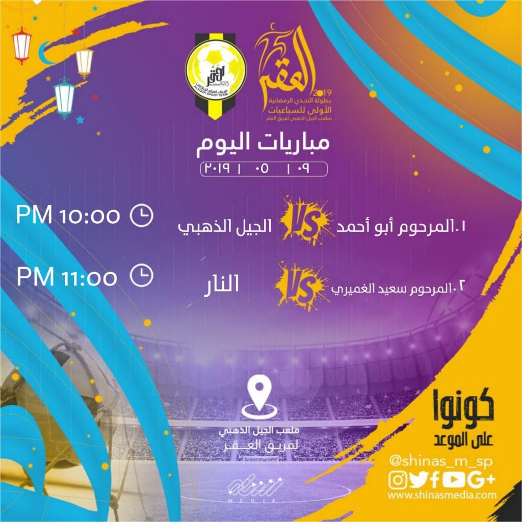 مباريات يوم الخميس من بطولة التحدي الرمضانية الاولى للسباعيات بملعب الجيل الذهبي لفريق العقر
