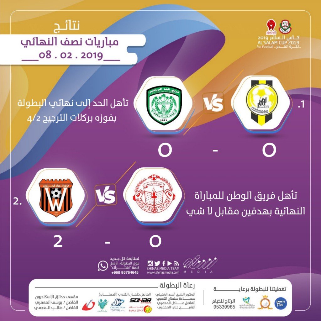 بثنائية نظيفة فريق الوطن يتأهل إلى نهائي بطولة كأس السلام ٢٠١٩م على حساب سُوَر حمّاد