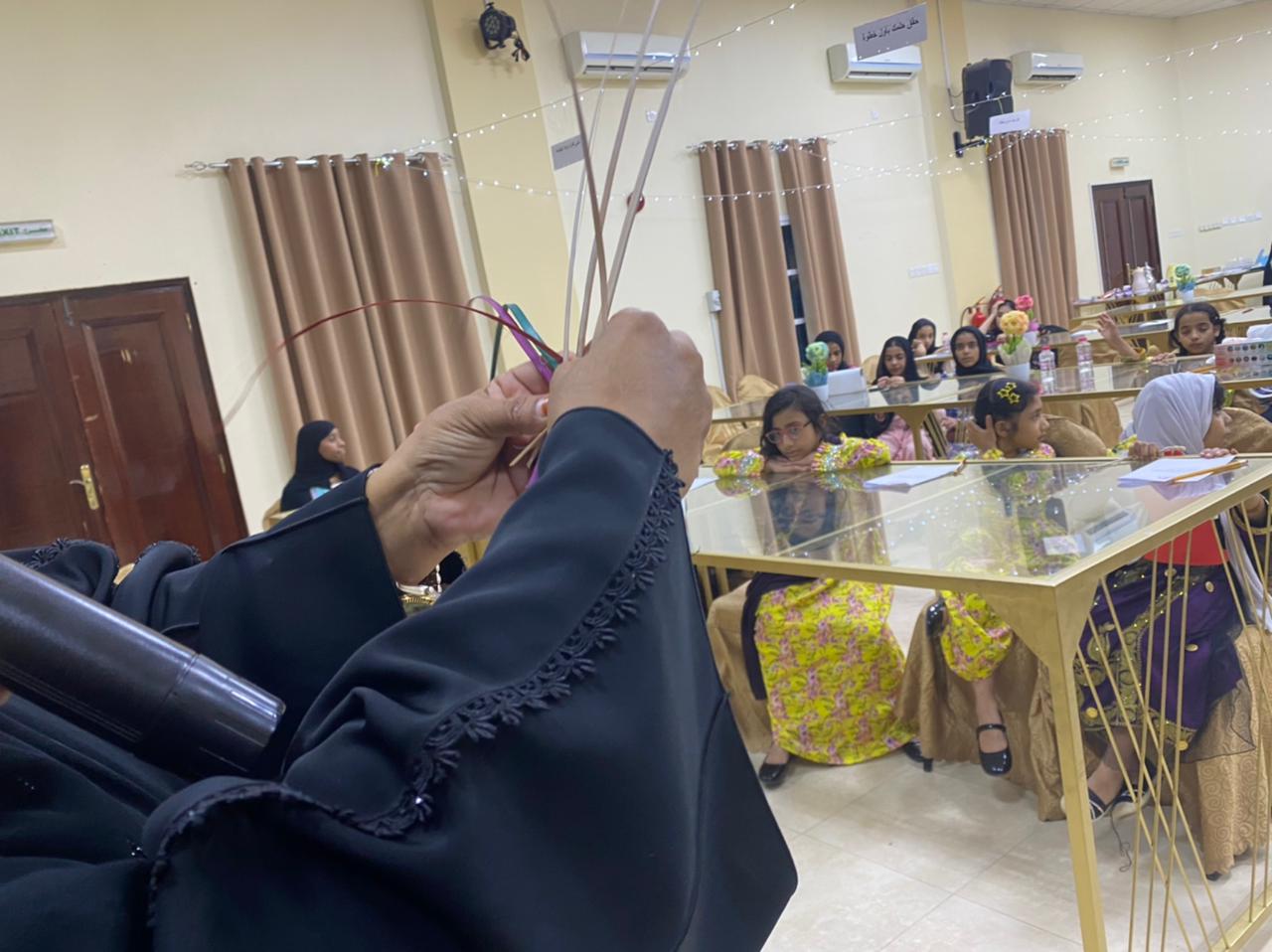 وتوالت الفقرات بعد ذلك في قاعة الجمعيه فقد قدمت الدكتوره فاطمه صقر المسلميه ورشه بعنوان اشحذ المنشار.. وبعدها تم الاستعداد والتجهيز للافطار الجماعي للفتيات والنساء وبعد الافطار قدمت الفاضلة شيخة المعمري ورشة عمل بعنوان خوصة وسف فيها تتعلم الفتايات عمل يدوي باستخدام السعفيات..