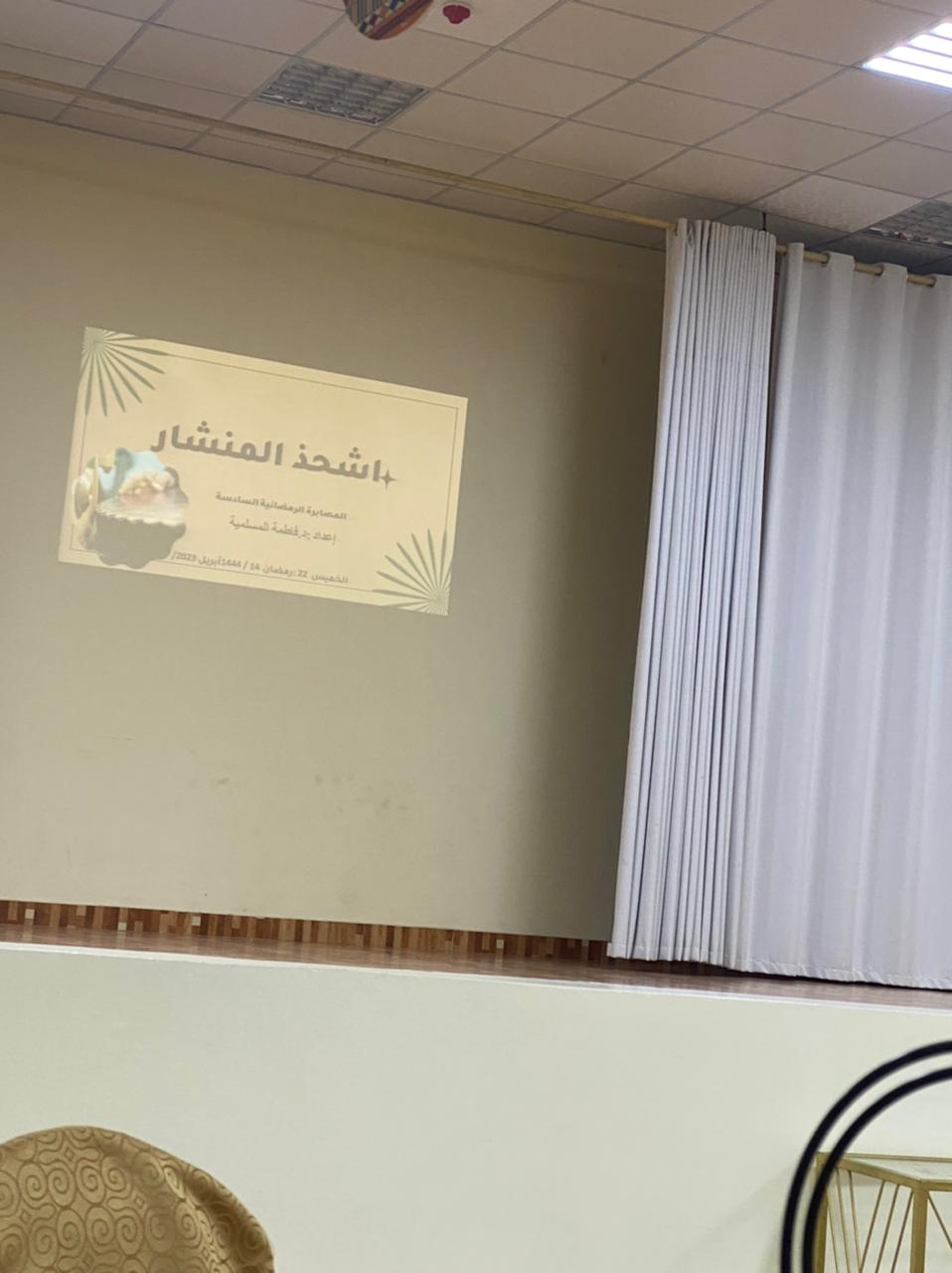 بعدها تم التوجه إلى جامع السلطان قابوس رحمه الله في الولاية لاداء صلاة التراويح بعد الانتهاء قدمت الأستاذة نورة العنرية ورشه بعنوان.. حتى احبه..ايضا من ضمن البرامج قدم الاستاذ سيف السعدي ورشه بعنوان. انت كما تريد.. بعدها تمت فعاليات المصابره الرمضانية بدعاء جميل وتوزيع بعض الهدايا للمشاركات..