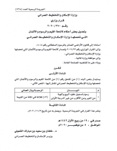 وزير الإسكان يصدر قراراً وزارياًبواسطة Ali alkhawar / 8 نوفمبر، 2020 أصدر وزير الإسكان قراراً وزارياً بتعديل بعض أحكام القيم والرسوم الأثمان التي تحصلها وزارة الإسكان