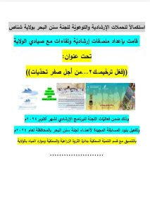 استكمالاً للحملات الإرشادية والتوعويّة للجنة سنن البحر بولاية شناص قامت بإعداد ملصقات إرشاديّة ولقاءات مع صيادي الولاية تحت عنوان: ((فعّل ترخَيصك2…من أجل صفر تحدّيات))